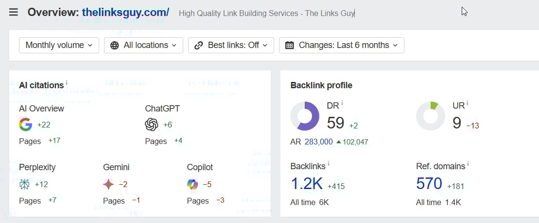 Ahrefs have the “Brand Radar” feature, which is pretty decent if you have a well known brand, and you are tracking the AI visibility “trend” of your brand name.